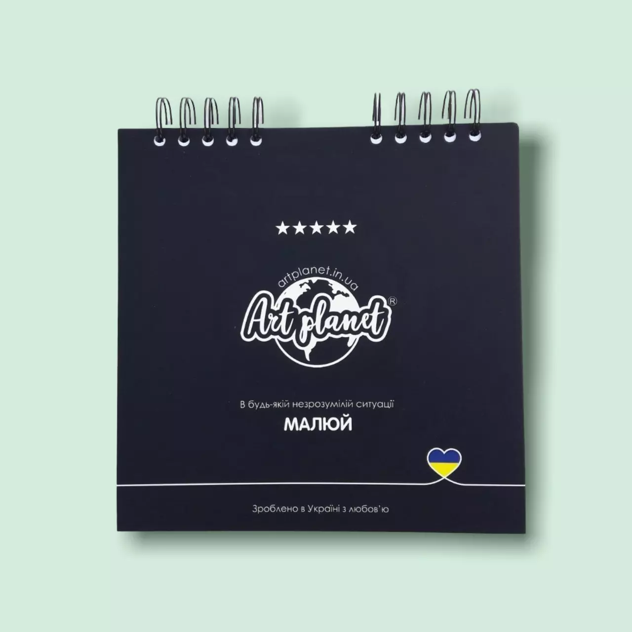 Тогда обратите внимание на фирменный квадратный альбом, размером 21 см*21 см с твердой обложкой на спирали от Art Planet на 50 листов.