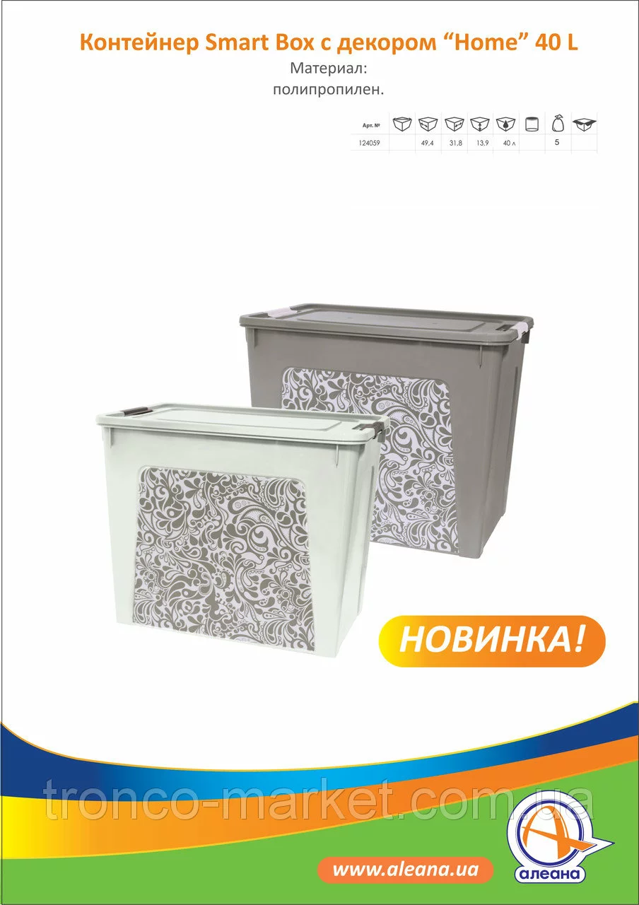 Контейнер Smart Box с декором 40 л. Home. Артикул 124059. Размеры :  мм 494 х 322 х 265.  В упаковке 5 шт.