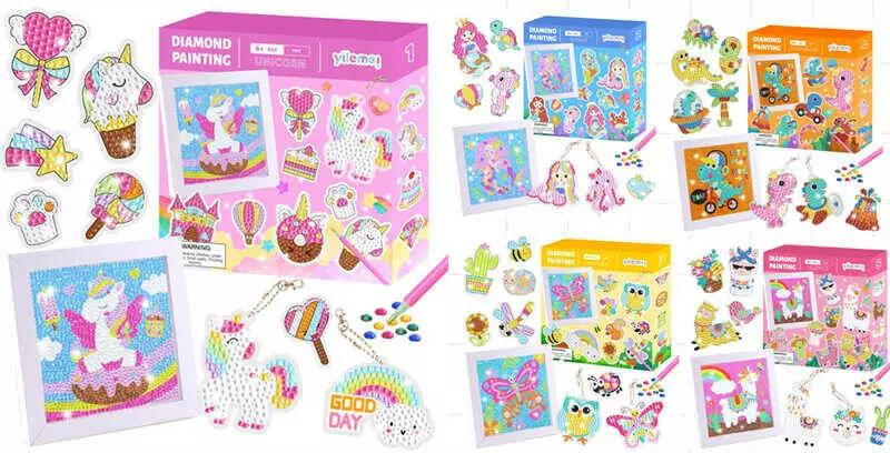 Алмазна мозаїка C 64274 (60) 4 види, картина, рамка, наліпки, 2 брелоки, фурнітура, алмази, тарілочка, віск, стилус, ВИДАЄТЬСЯ МІКС ВИДІВ, в коробці