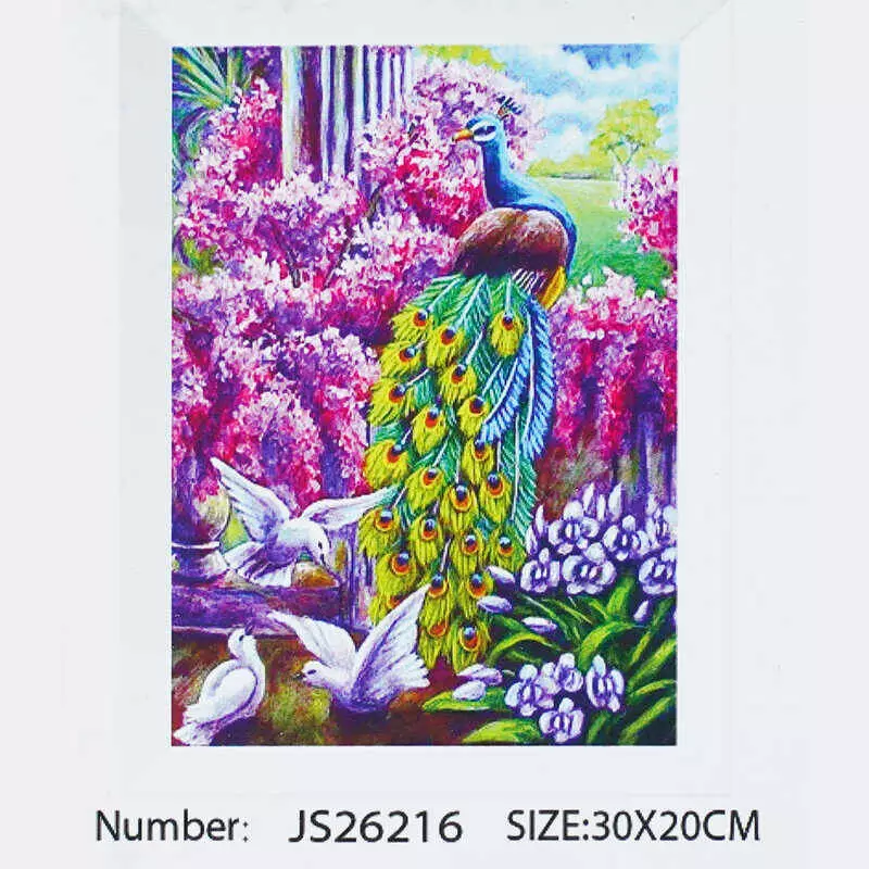 Алмазна мозаїка JS 26216 (50) "TK Group", 20х30 см, "Павич у райському саду", в коробці