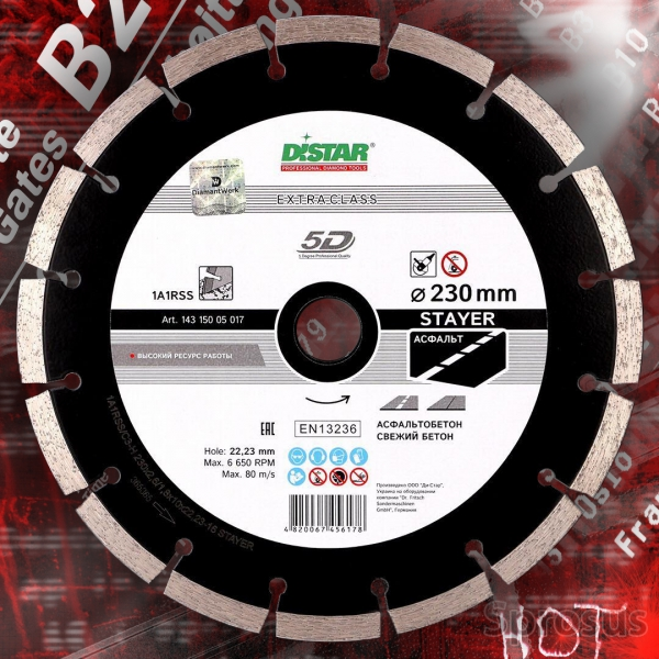 Алмазный диск для резки асфальта Distar Stayer 230 mm с высотой полезного алмазного слоя 10 мм посадочное отверстие 22.2 мм для болгарок. Так же диск Distar Stayer можно использовать дл япорезки абразивныйх строительных материалов как газобетон, пенобетон, песчаник