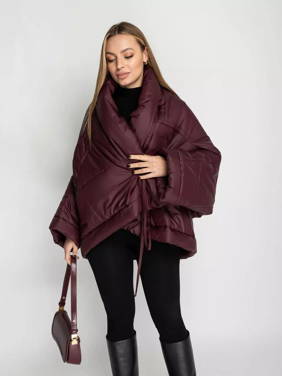 Стильная, модная, в тоже время практичная куртка перевертиш,. Модель выполнена из плащевки, износостойкая. Утеплитель тонкий силикон. Имеется два кармана. Завязывается на длинный шнурок. Длина по спинки 84 см. Длина рукава 63 см.
