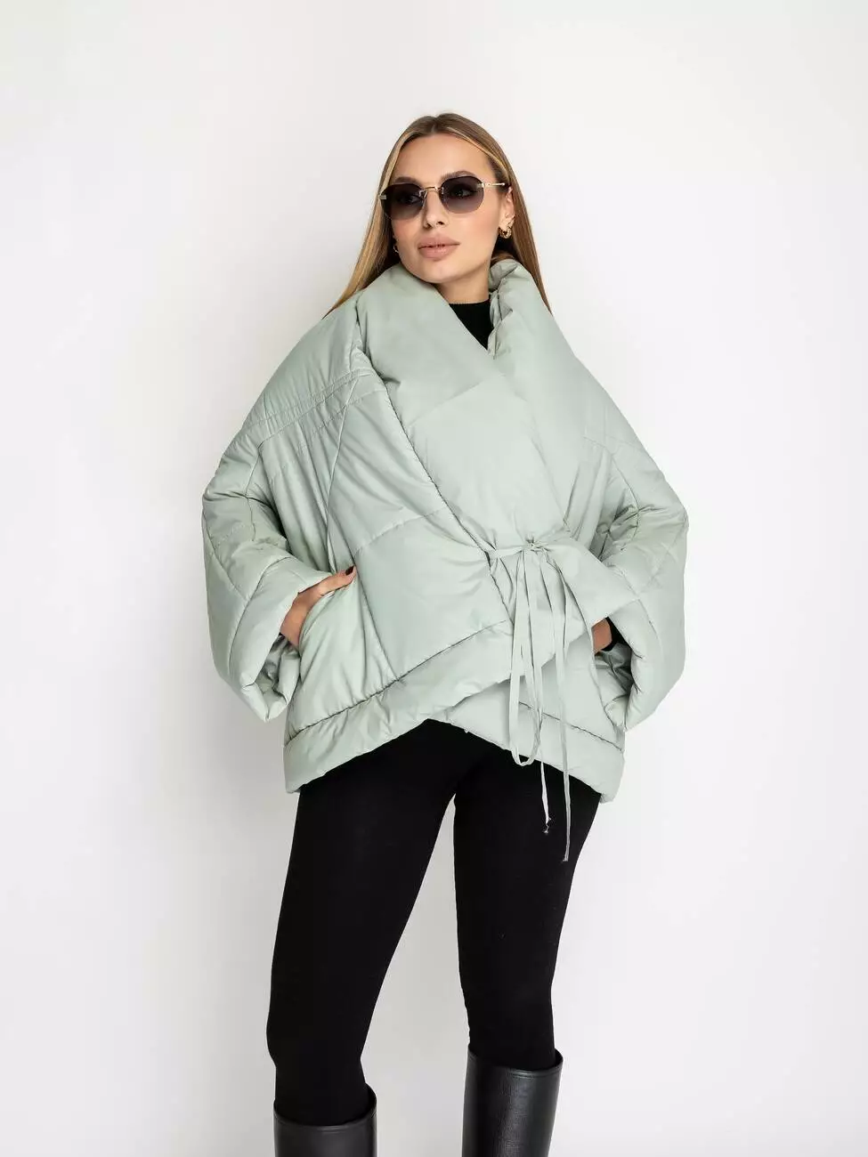 Стильная, модная, в тоже время практичная куртка перевертиш,. Модель выполнена из плащевки, износостойкая. Утеплитель тонкий силикон. Имеется два кармана. Завязывается на длинный шнурок. Длина по спинки 84 см. Длина рукава 63 см.