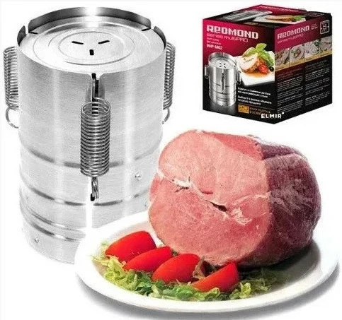 Шинки REDMOND RHP-M02 — кухонний аксесуар для швидкого приготування шинки, рулетів та інших делікатесів з м'яса, птиці або риби з додаванням різних спецій та наповнювачів у домашніх умовах.