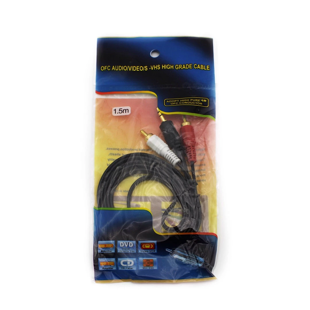 Аудио-видео кабель AV 3.5 Jack (тюльпан 2), 1.5 m