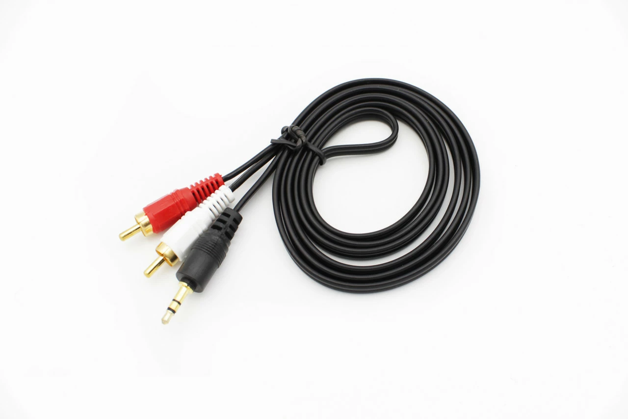 Кабель «TRRS 3.5mm to 3xRCA» (аналоги названия - «mini-jack to 3xRCA» или «Composite AV Cable»). С одной стороны этого кабеля — 4-х контактный TRRS разъем диаметром 3.5 мм, с другой — 3 разъема RCA, хорошо известные под псевдонимом «тюльпан» из-за своей формы.
