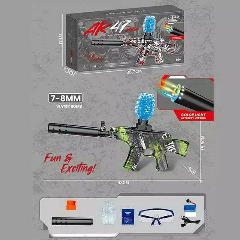 Автомат G 950-10 A (36) підсвічування, довжина з глушником 49см, пачка орбізів, окуляри, механічний принцип роботи, акумулятор 7.4V, в коробці