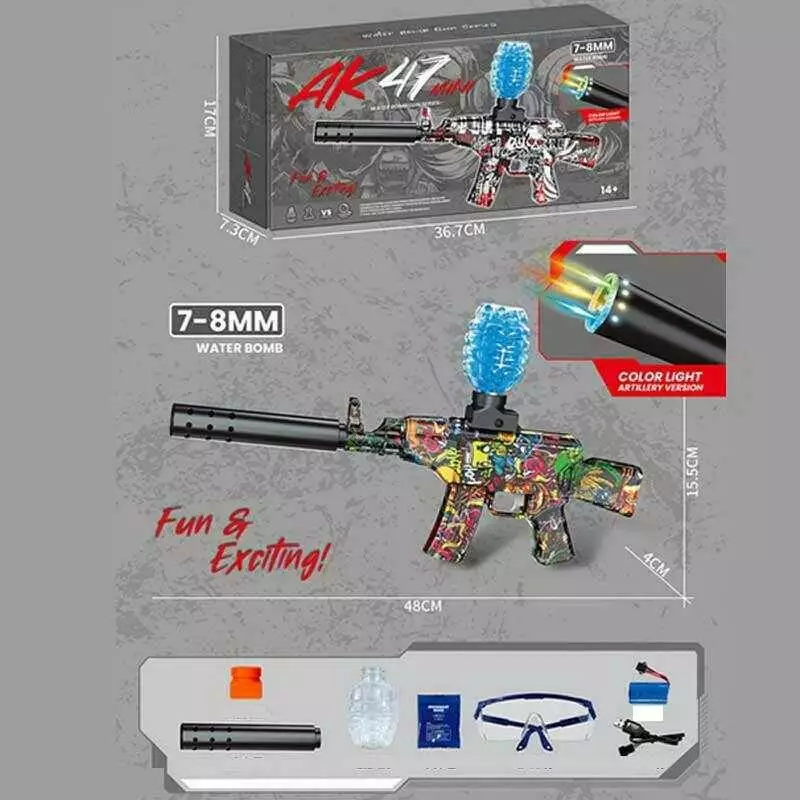 Автомат G 950-5 A (36) підсвічування, довжина з глушником 49см, пачка орбізів, окуляри, механічний принцип роботи, акумулятор 7.4V, в коробці