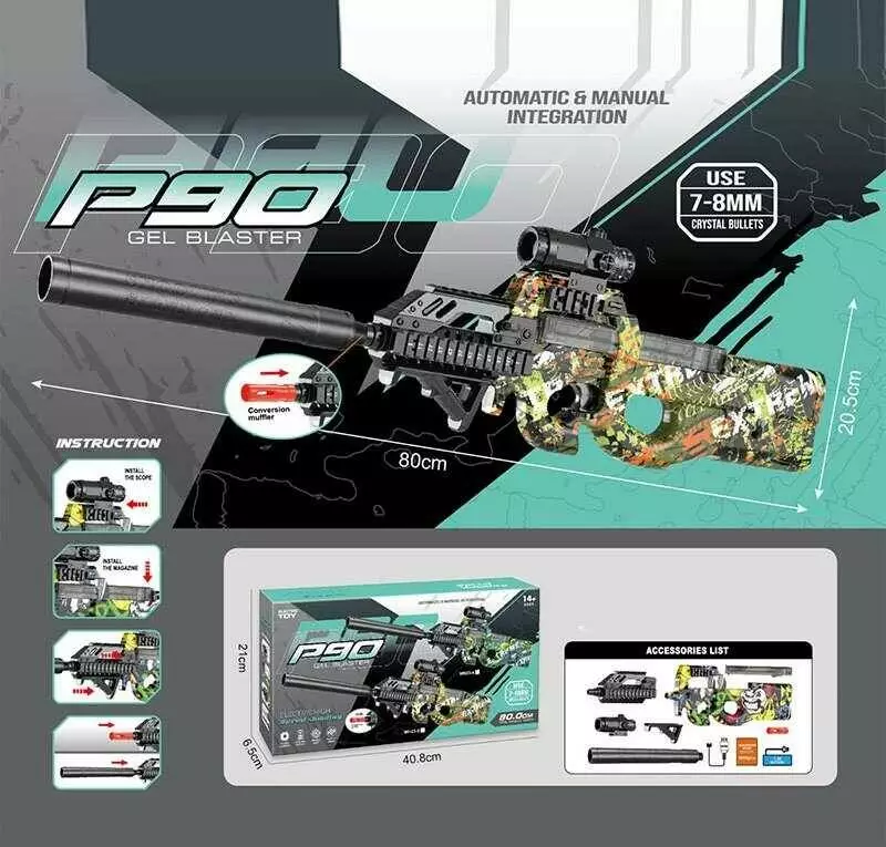 Автомат WH 23-3 (30) довжина 80 см, стріляє орбізами, автоматичний/механічний принцип, акумулятор 7.4V, приціл, глушник, пачка орбізів, в коробці