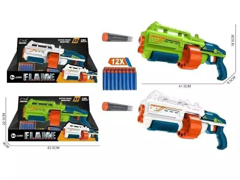 Автомат Z 1163-1 (24/2) 2 кольори, стріляє м’якими патронами, механічний принцип роботи, 12 патронів, в коробці