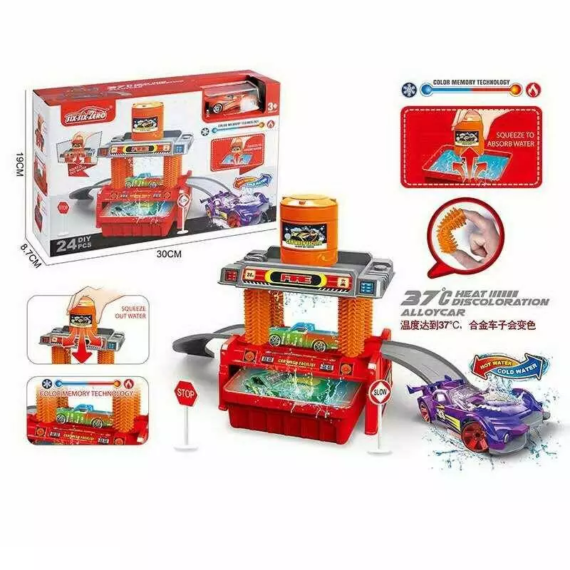 Головна > Каталог > Іграшки > Автотреки, гаражі > Автомийка 660 S 101 (48/2) машинка змінює колір, трек, контейнер та бак для води, аксесуари, наліпки, в коробці оптом