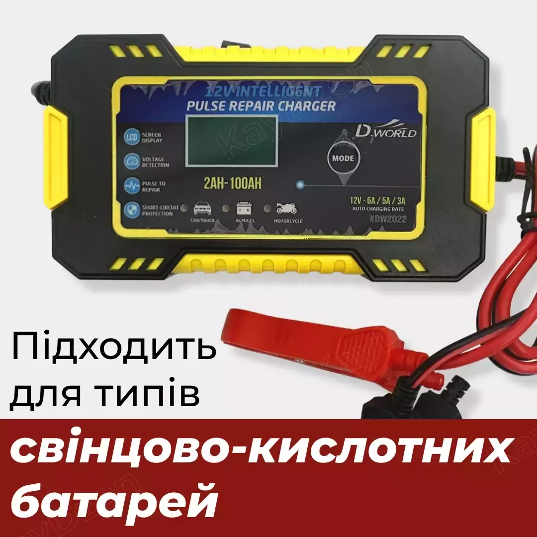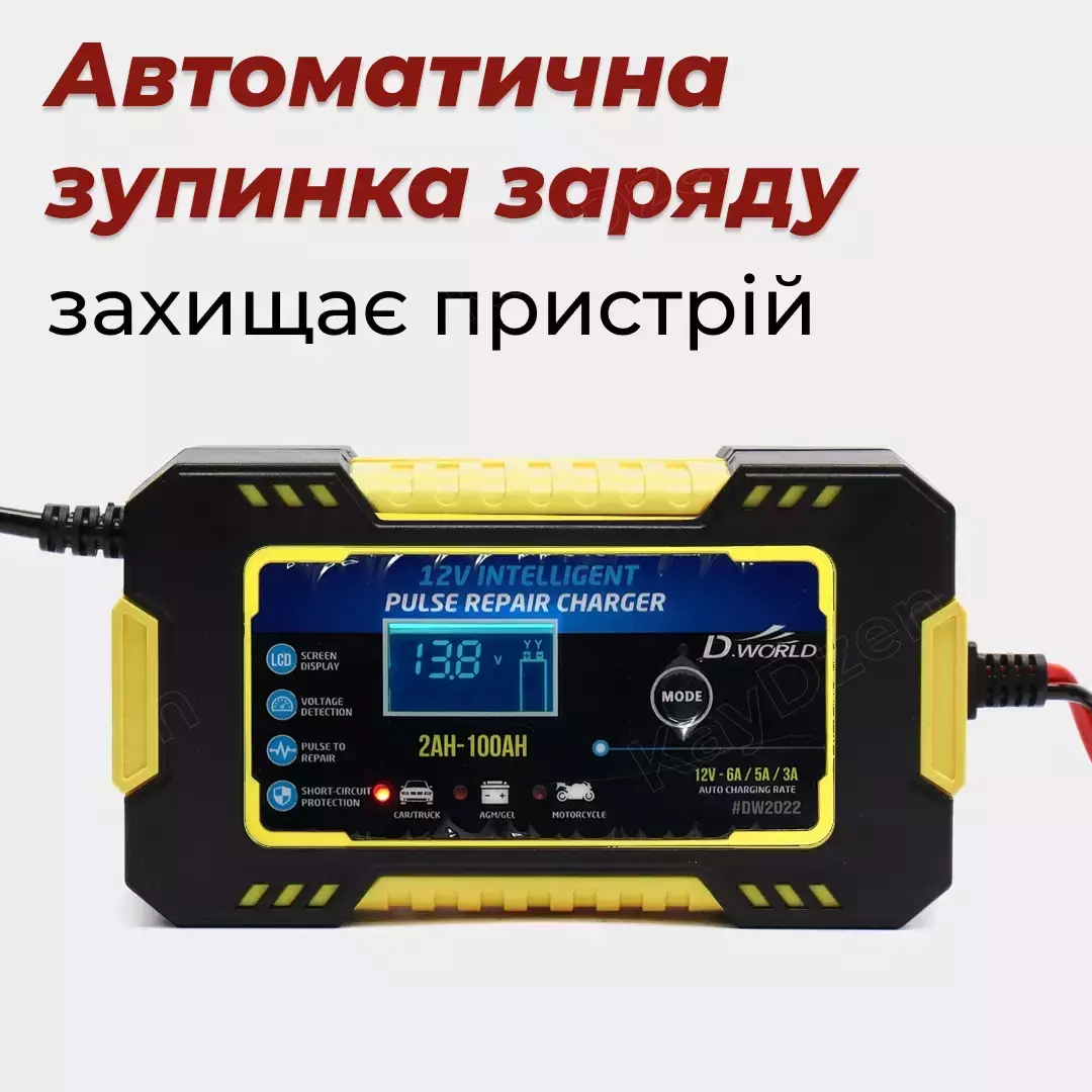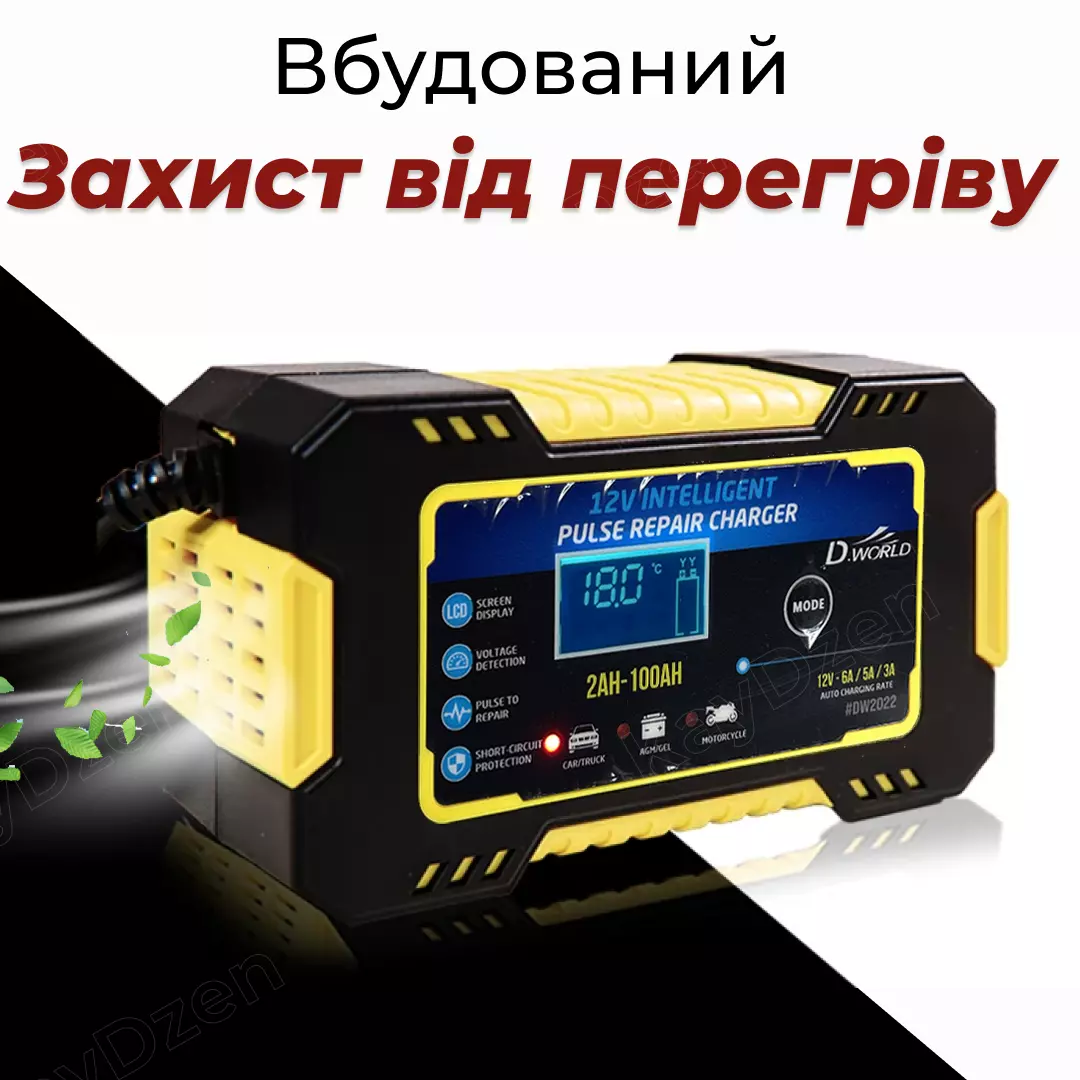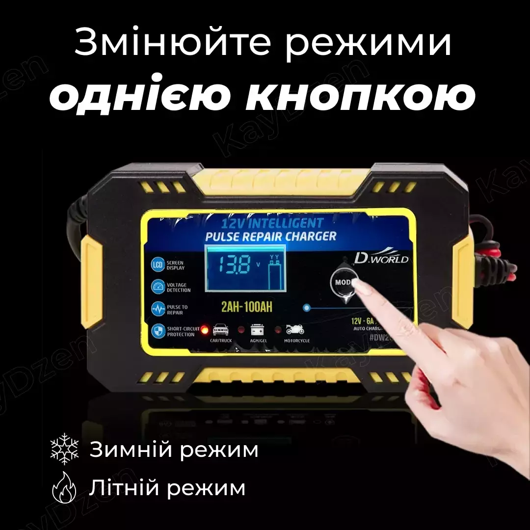 Автоматическое зарядное устройство D WORLD DW2022 предназначено для зарядки и восстановления авто- мото-аккумуляторов всех типов. Встроенный микропроцессор защищает ваш аккумулятор от перезарядки, поэтому нет необходимости постоянно за ним следить. В корпусе имеется датчик температуры, который измеряет её и автоматически подбирает необходимый режим (летний или зимний) и вольтаж.
