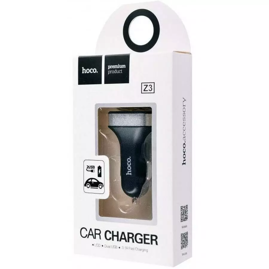 <h3>Автомобильное зарядное устройство 3.1А Hoco 2USB Черное