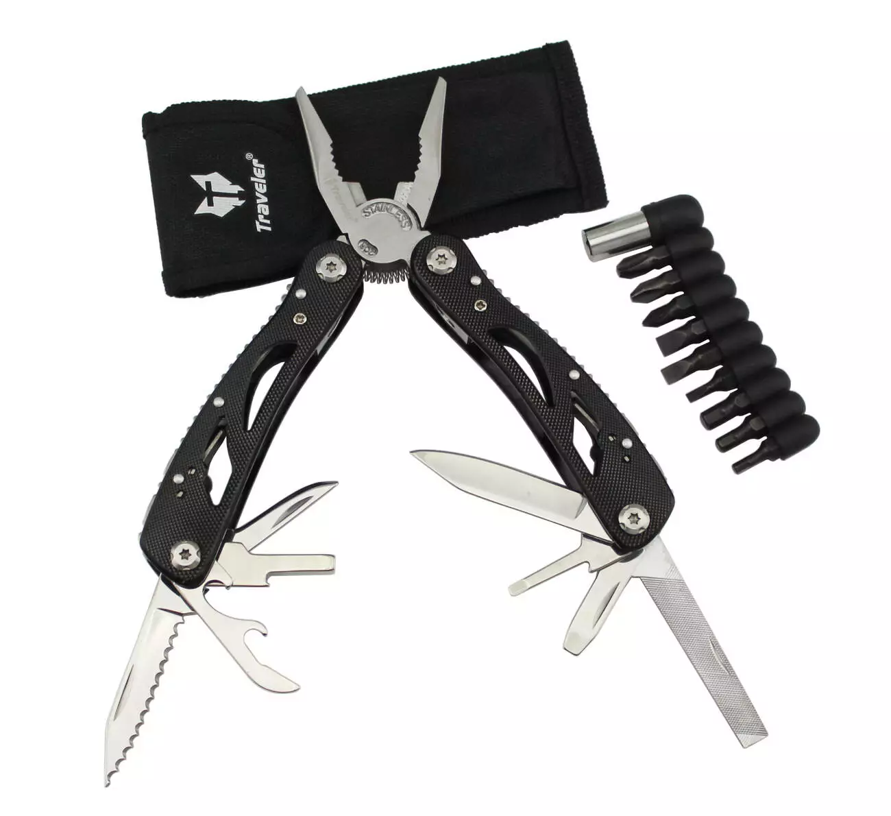 Многофункциональный нож (мультитул) с комплектом бит (72шт/ящ) MT629 (Черный)