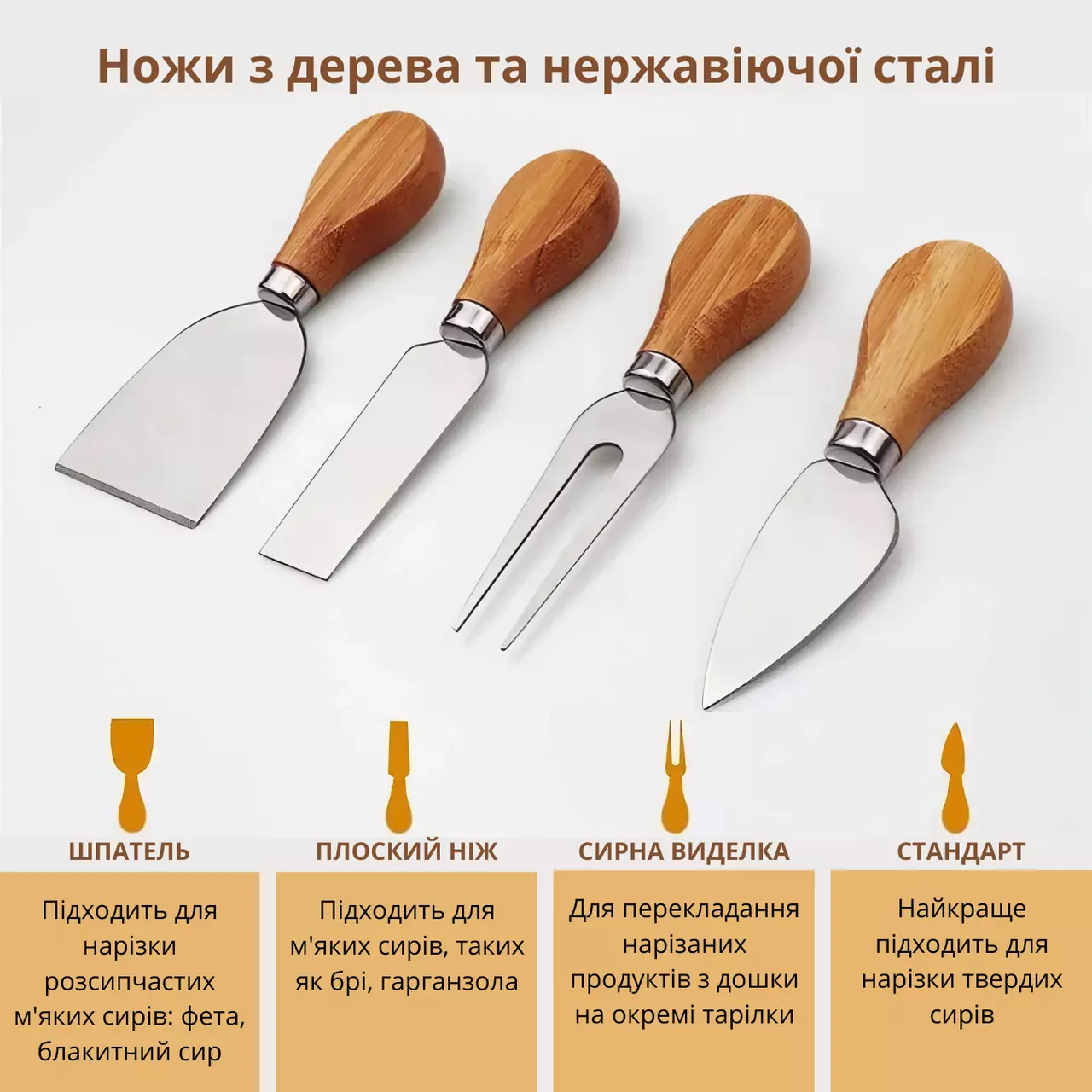 сыра, колбас, фруктов и закусок. В комплект входят 4 ножа для сыра,