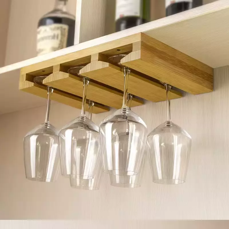Элегантный подвесной держатель для бокалов из натурального бамбука,