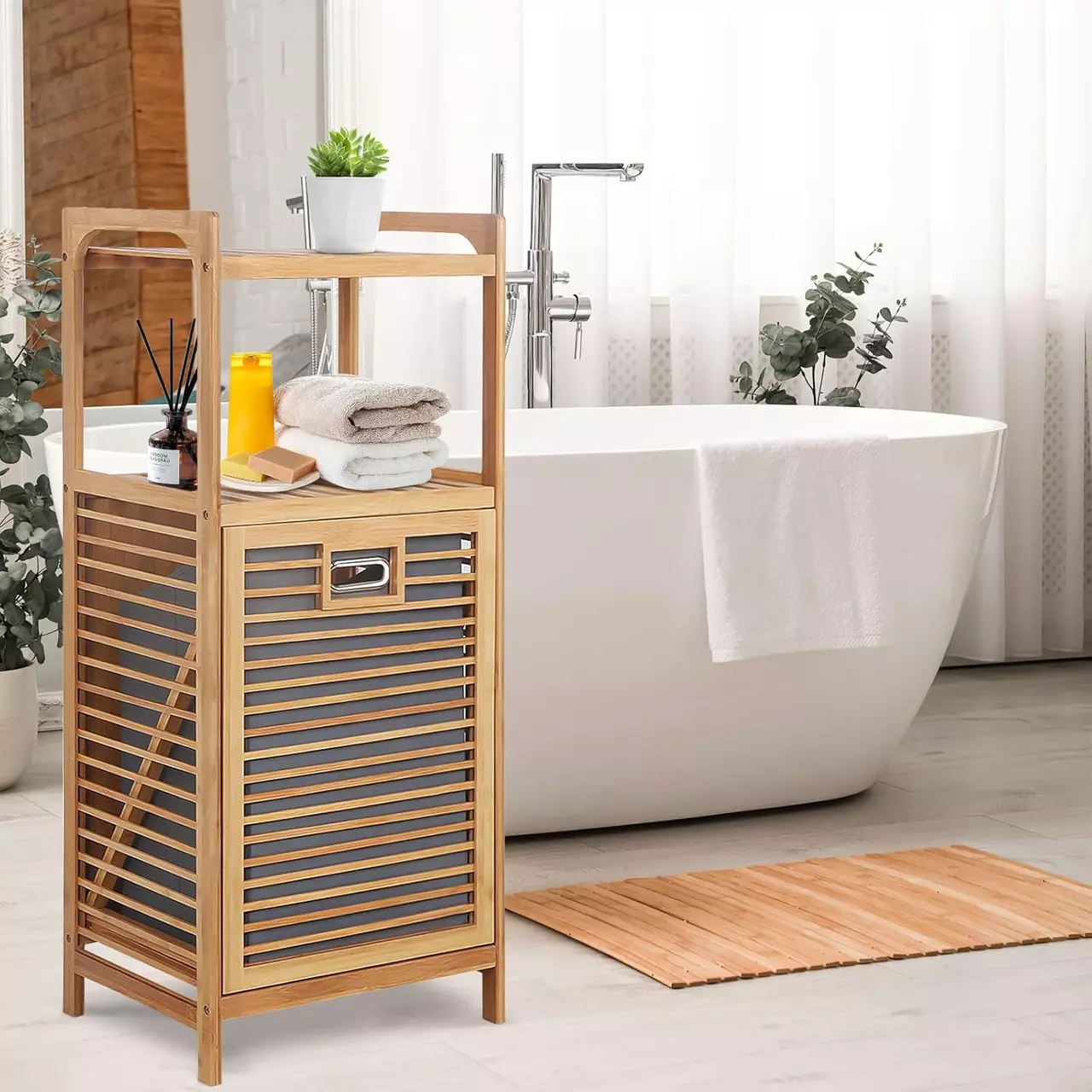 Функціональний бамбуковий стелаж із кошиком для одягу поєднує в
