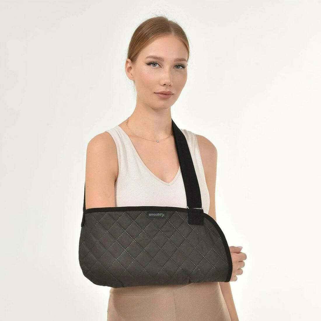 Бандаж на руку виготовлений із флізеліну. Його можна регулювати в