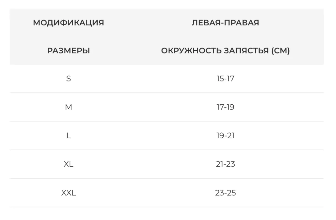 • отдельно для правой и левой руки