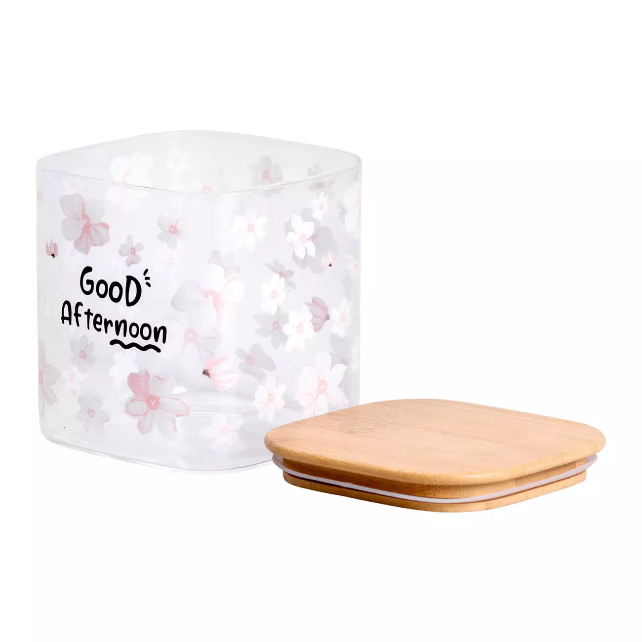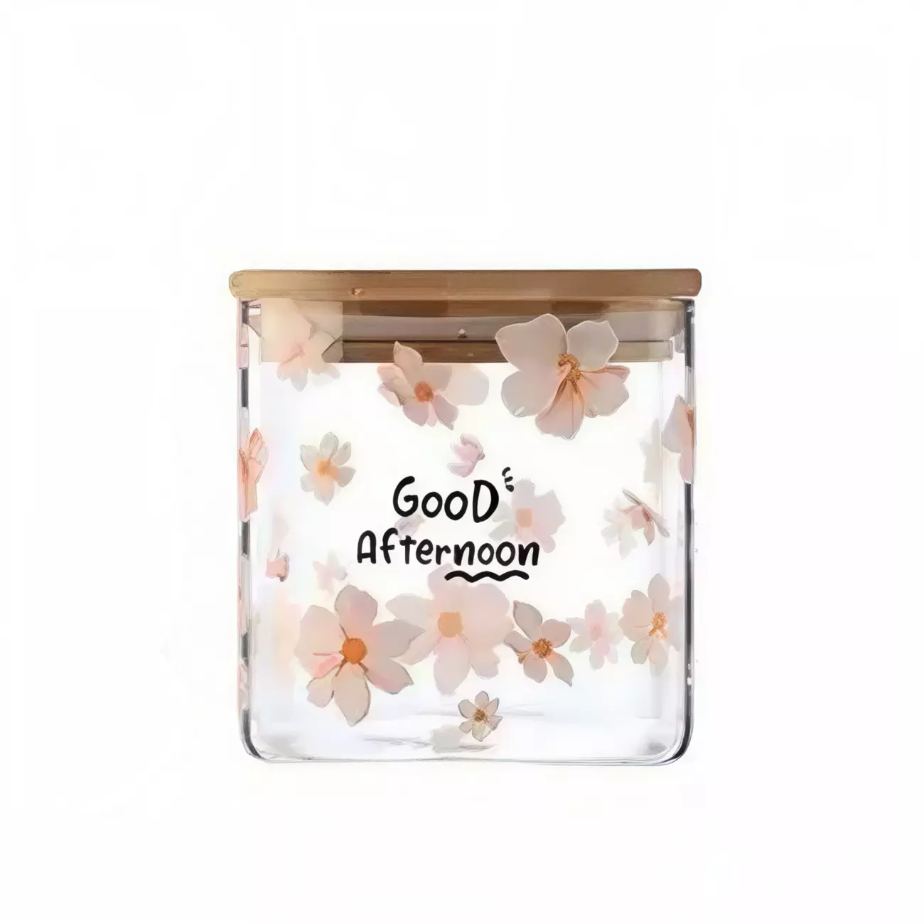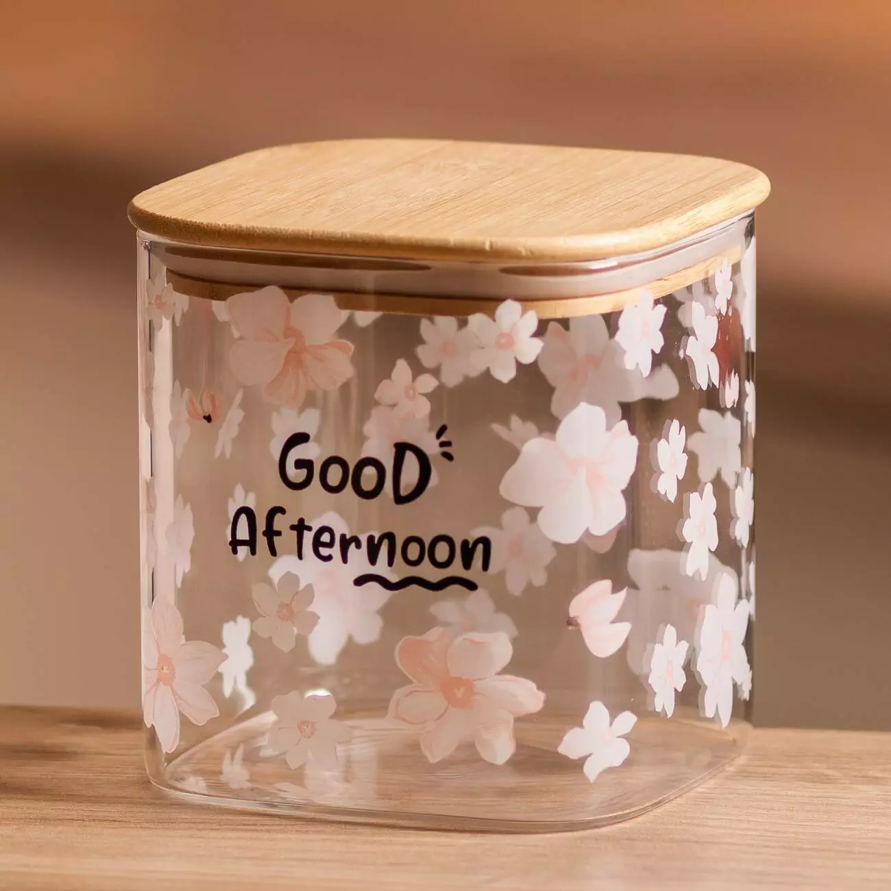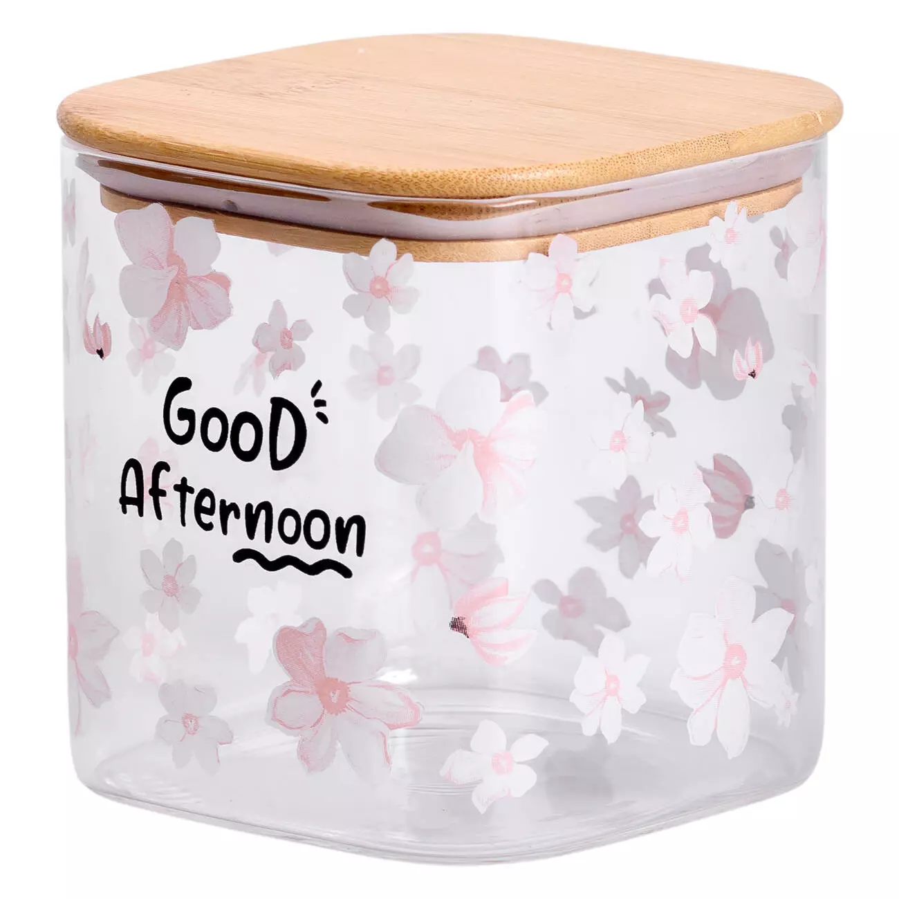 Дизайн банки відрізняється приємною ноткою витонченості та лаконічності: прозоре скло прикрашене ніжним принтом із квіточок сакури, що створює легку та затишну атмосферу на вашій кухні.