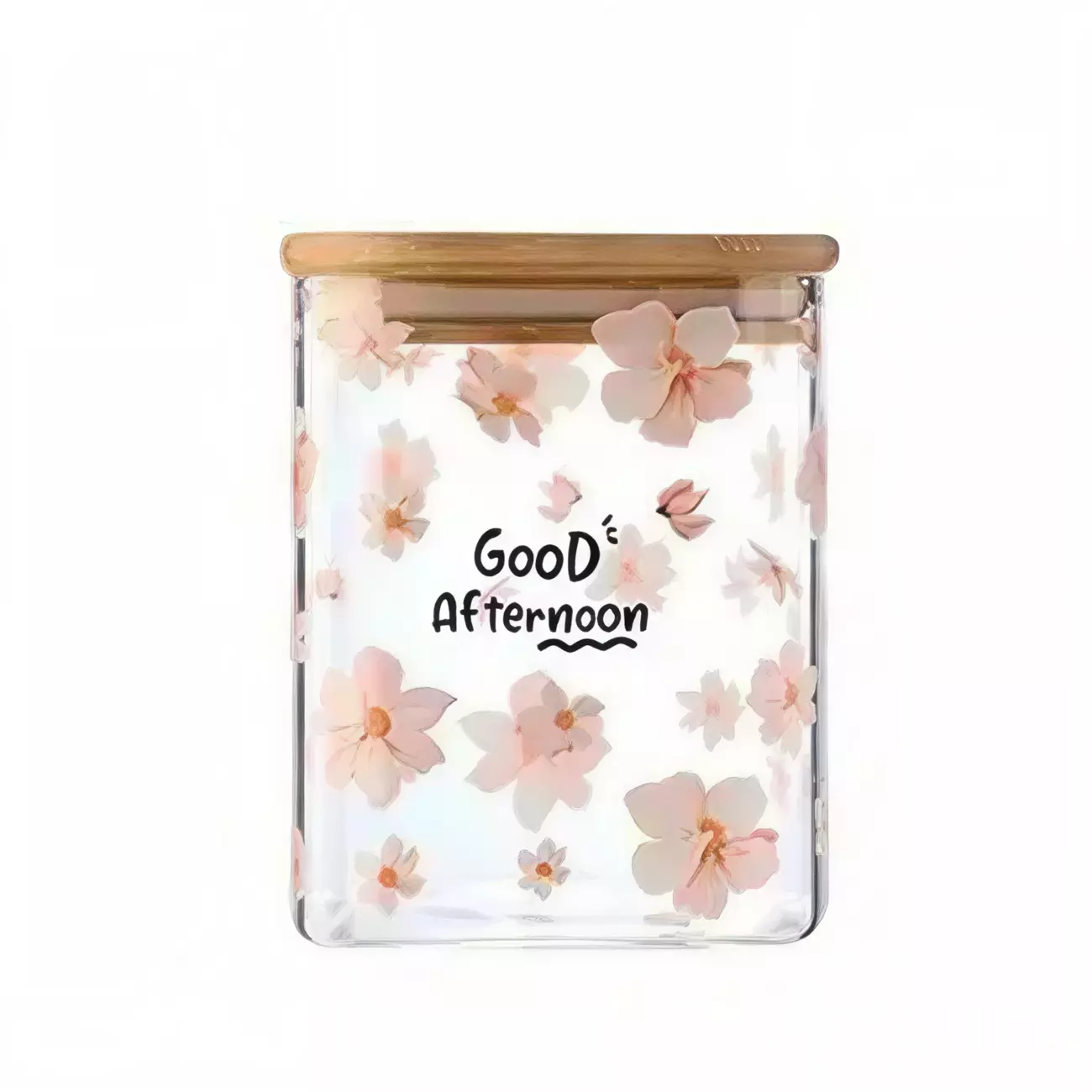 Дизайн банки відрізняється приємною ноткою витонченості та лаконічності: прозоре скло прикрашене ніжним принтом із квіточок сакури, що створює легку та затишну атмосферу на вашій кухні.