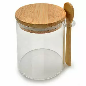 Банка з бамбуковою кришкою та ложкою 550мл 8.5*12см TD00980-0.55