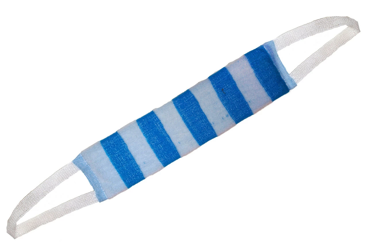 Банна мочалка «Матроска» з тканинного матеріалу з поролоном усередині, ідеально піниться і дуже дбайливо очищає, огортаючи дрібнопухирчастою піною. Відмінно підходить для домашнього використання, завдяки формі та ручкам з обох боків Вам не важко буде потерти собі спинку. Висока зносостійкість матеріалу сприяє тривалому використанню.