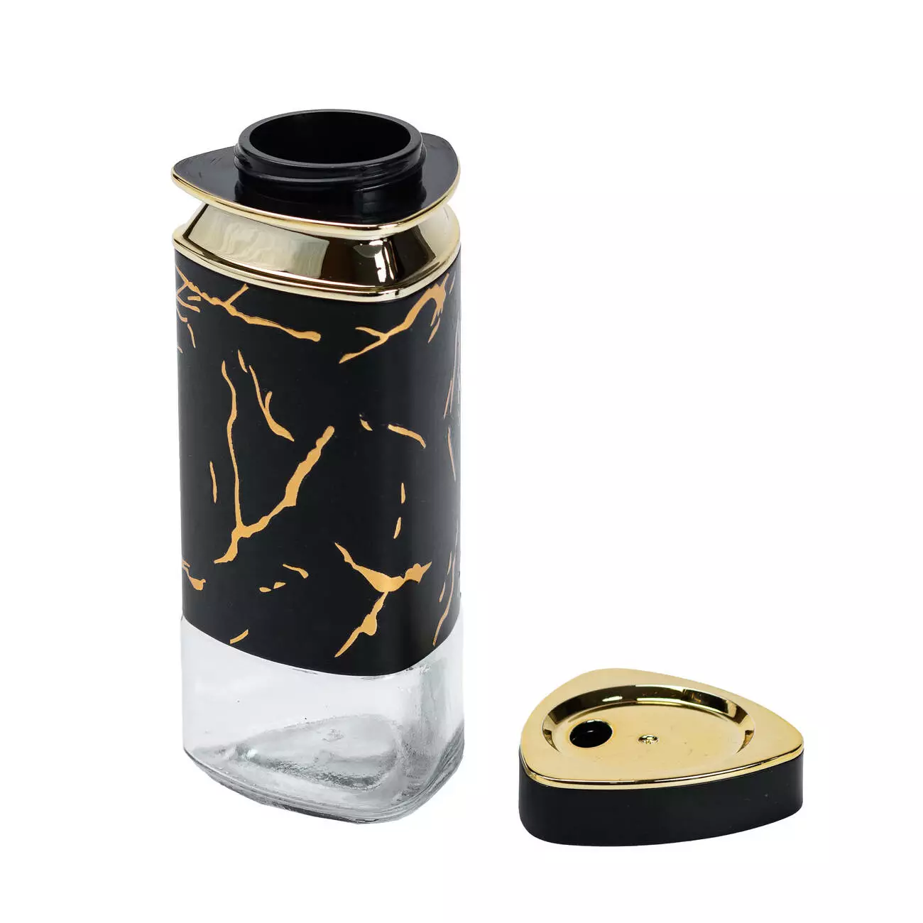 Баночка оснащена пластиковою кришечкою, яка щільно закривається, запобігаючи попаданню вологи та зберігаючи спеції в ідеальному стані. Мармуровий декор додає елегантності та розкоші, гармонійно вписуючись у будь-який кухонний інтер'єр, від класичного до сучасного.
