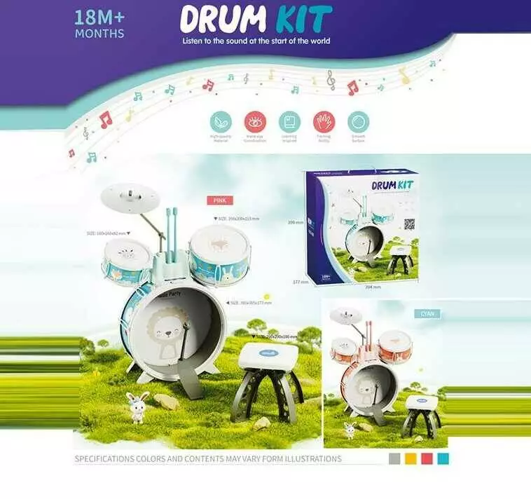Барабанна установка 3900 E (8) 3 барабани, діаметри: 38 см, 20 см, 16 см, тарілка, стільчик, палички, в коробці