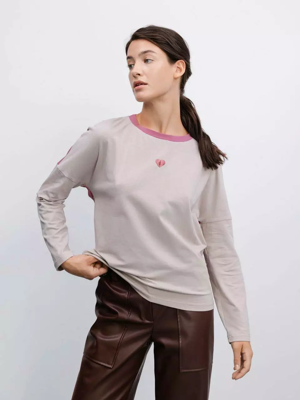 Спереду футболка прикрашена маленьким вишитим серцем, яке додає оригінальності та ніжності.