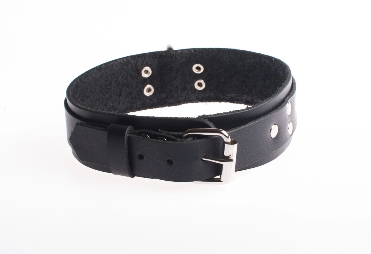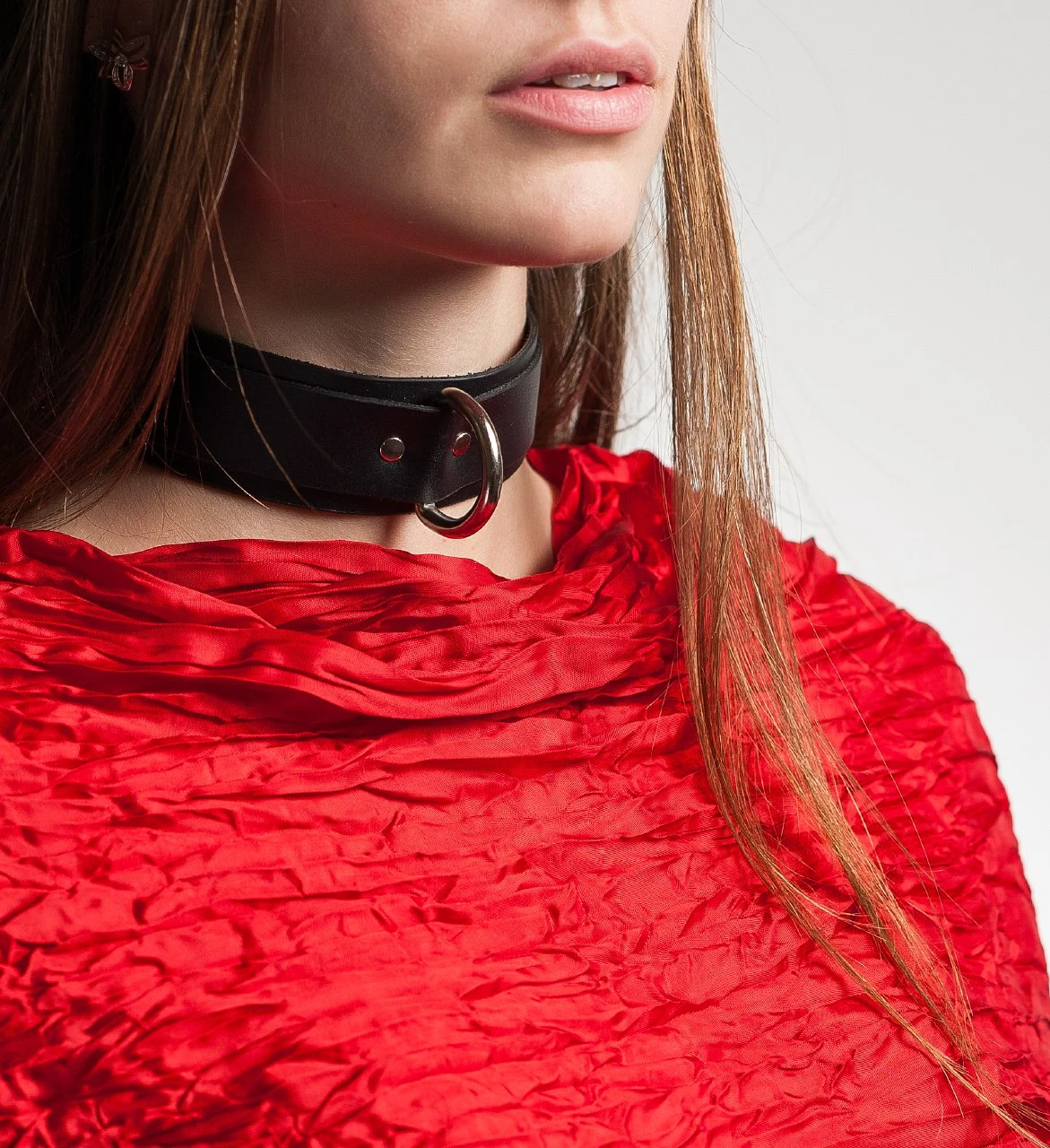 Стандартний БДСМ нашийник є смужкою чорної шкіри, часто забезпеченою металевими D-подібними кільцями, щоб причіпляти повідець.