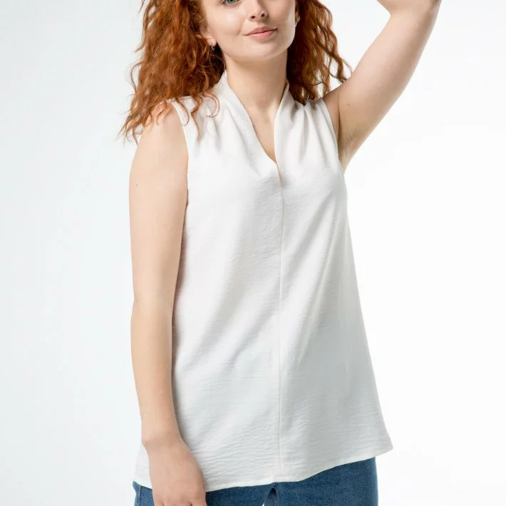 Базова блуза-топ, з дизайнерської стійкою по горловині. Тканина