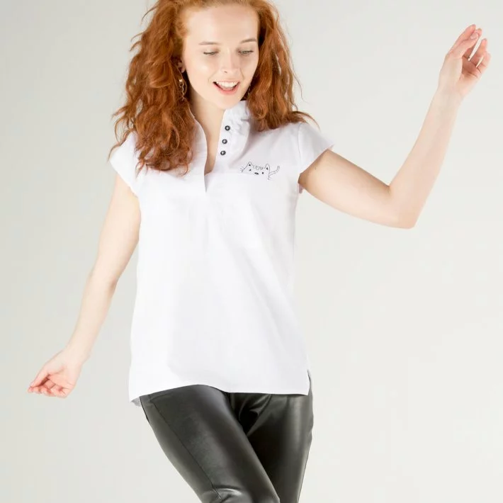 з ненав'язливою вишивкою. Горловина відкрита, гудзики