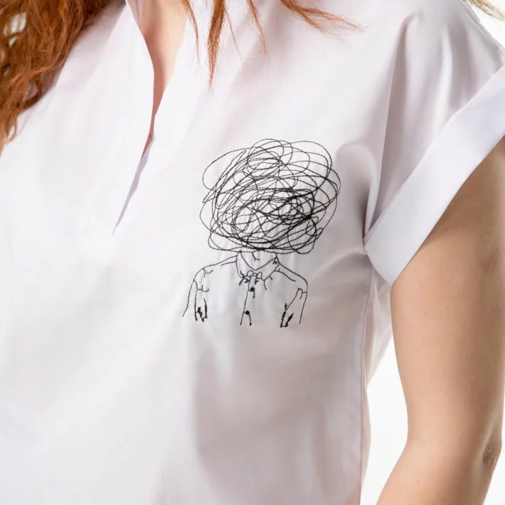 ненав'язливою вишивкою. Горловина відкрита, гудзики декоративні