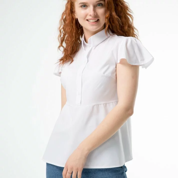 Класична блузка з виточками по грудях і рукавами-крильцями.