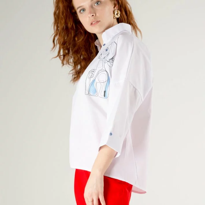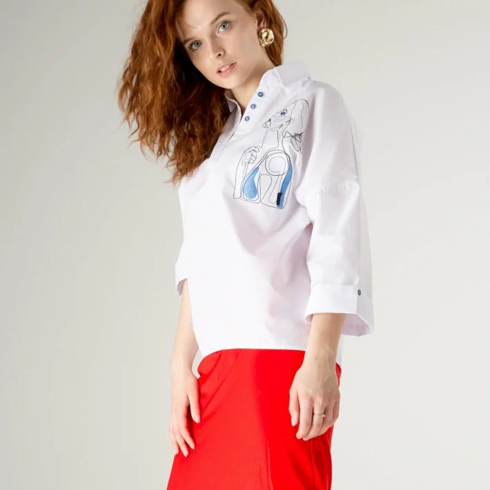 Блузка з натуральної тканини оверсайз силуету з відкритою