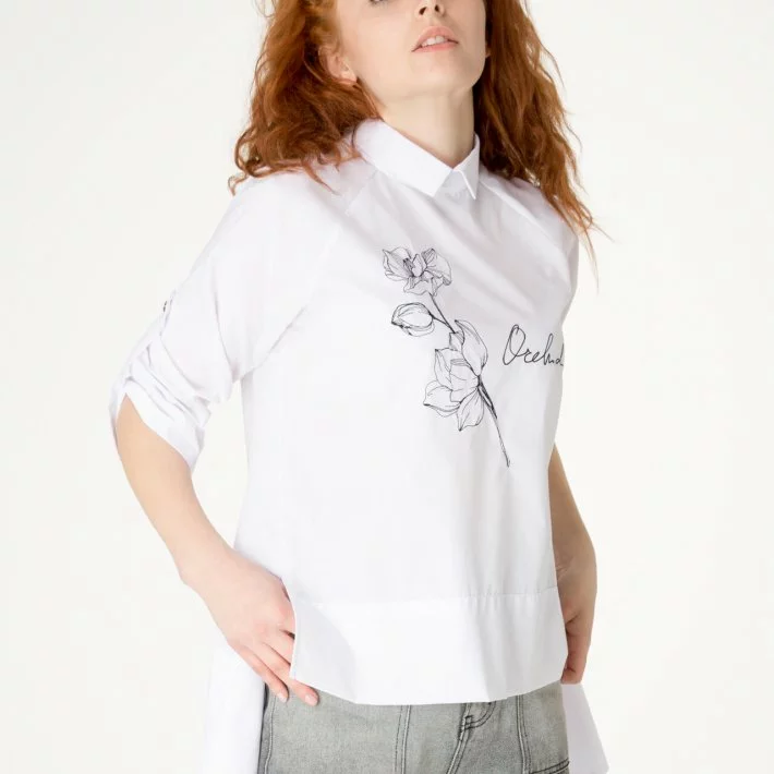 Белоснежная рубашка с дизайнерской вышивкой, свободная, с