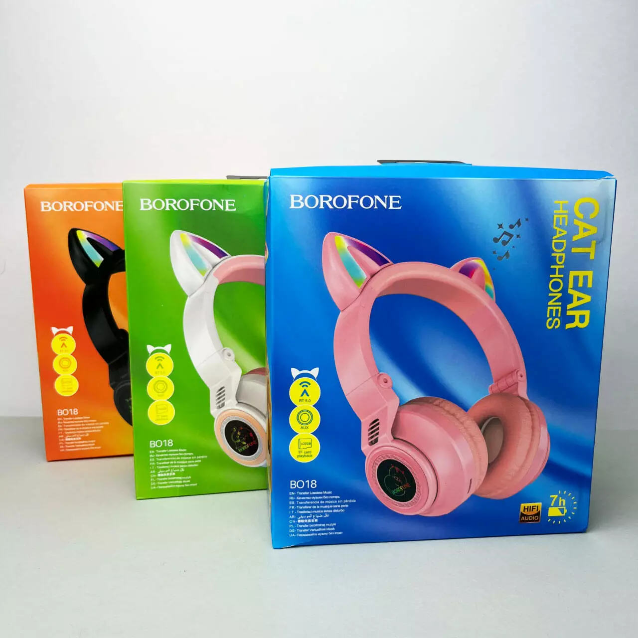 Беспроводные наушники Cat Ear Borofone BO18 - Это не просто наушники - это выражение индивидуальности и стиля. Особенно это актуально для детей и подростков, для которых важны не только функциональность, но и внешний вид аксессуара. Мы рады представить вам наушники с ушками котика — идеальный продукт, сочетающий в себе высокое качество звука, комфорт и уникальный дизайн который добавляет им очарования и делают их по-настоящему особенными. Эти наушники созданы, чтобы приносить радость и делать каждый день немного ярче.
