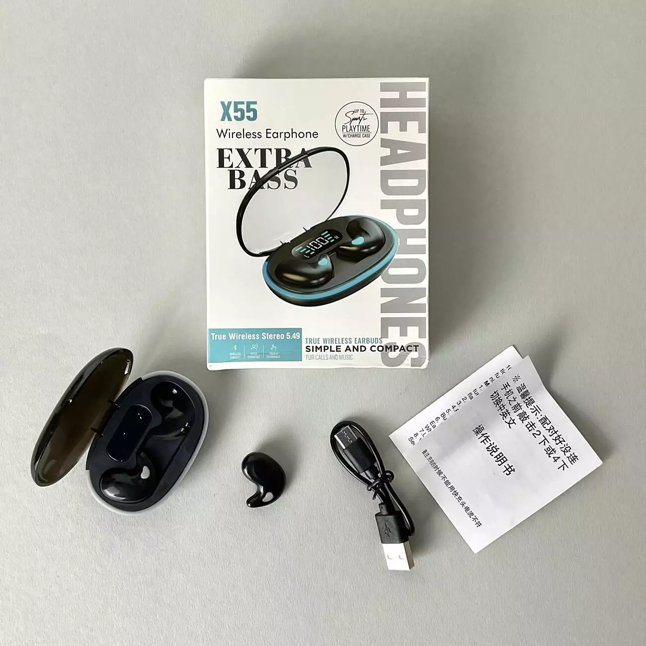 Беспроводные наушники X55 series, Extra Bass, Smart Case (Черный)