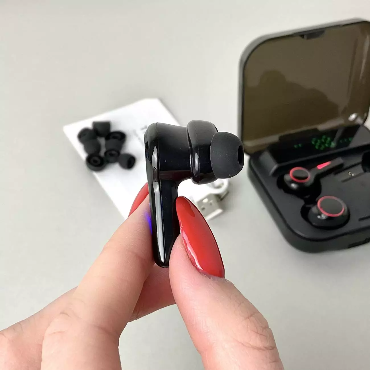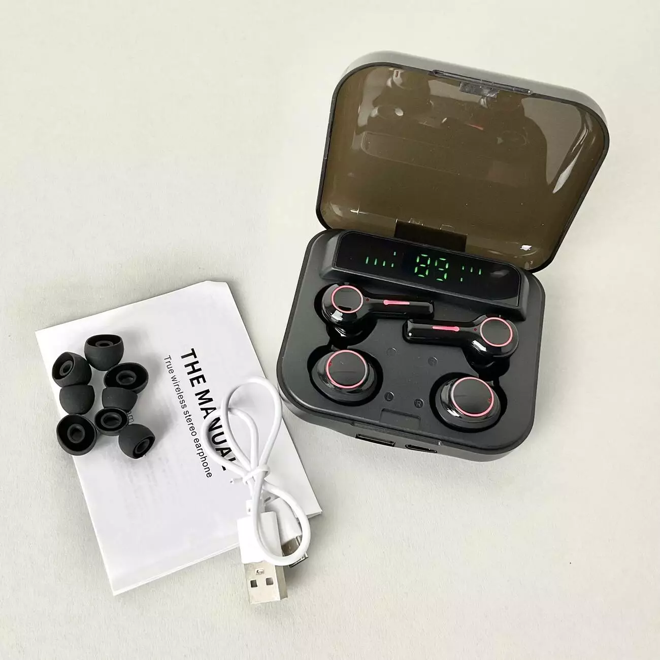 Бездротові навушники M21 Headphones 4 (Чорний) Led – це універсальна гарнітура, що поєднує стильний дизайн, зручність використання та якісне звучання. Завдяки технології Bluetooth 5.3 навушники забезпечують стабільне з'єднання та чисте звучання без перешкод. Ергономічна форма щільно фіксується у вусі, забезпечуючи комфорт навіть за тривалого носіння, а цифровий дисплей на кейсі відображає рівень заряду.