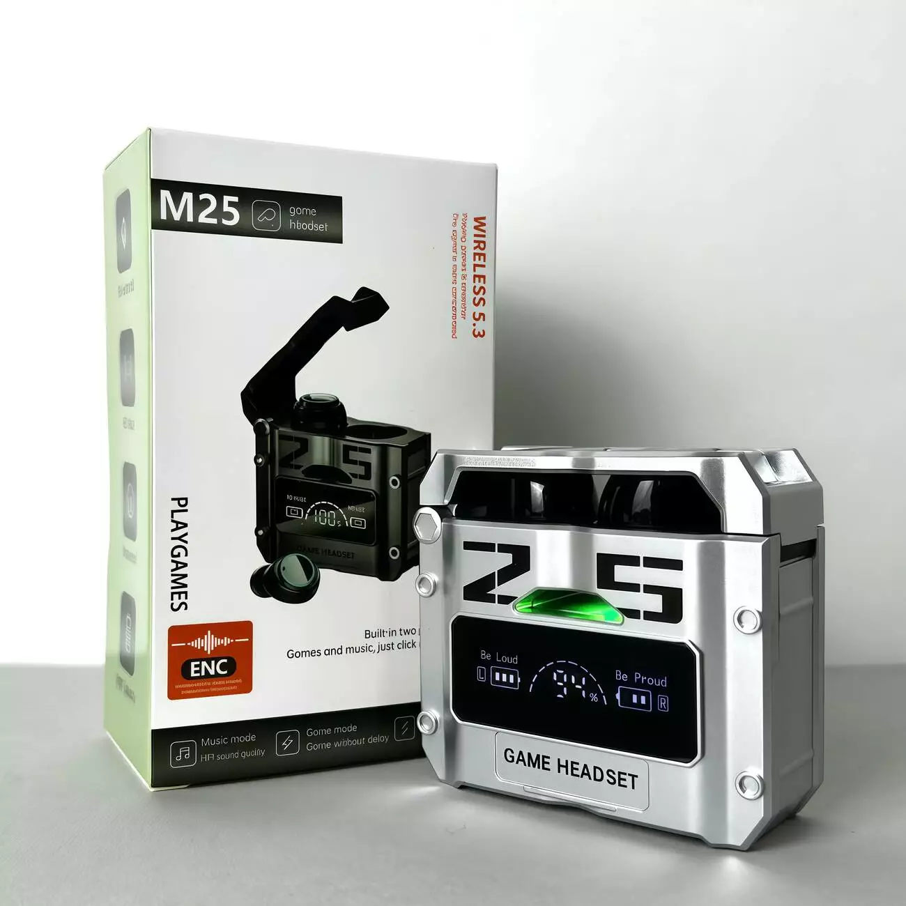 Бездротові навушники M25 series, Gaming EarBuds, Smart Case (Чорний) – компактна та функціональна гарнітура, що забезпечує якісне звучання та комфортне носіння. Ідеально підходять для повсякденного використання, занять спортом та прослуховування музики.