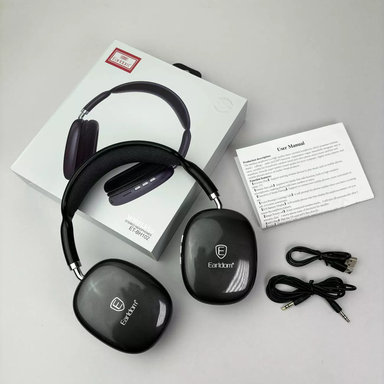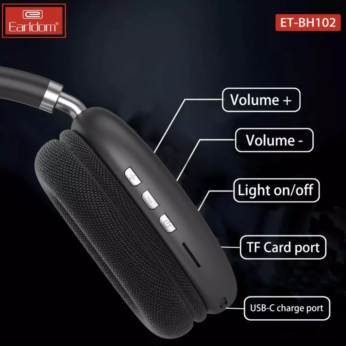 Бездротові навушники Pro Max Earldom ET-BH102 - це унікальний аксесуар, що дозволяє слухати пісні або аудіокниги з комфортним рівнем звуку та не заважаючи оточуючим. Де б ви не були: у парку на прогулянці, у громадському транспорті чи в офісі, крихітна аудіосистема дозволить створити потрібну атмосферу та не нудьгувати за рутинними заняттями. Багатофункціональні кнопки дозволяють відповісти або завершити дзвінок, відтворювати музику, змінювати гучність музики, паузу звучання, перемикати треки. Підключення навушників до джерела аудіо-сигналу комбіноване – за допомогою інтерфейсу Bluetooth та за допомогою AUX-кабелю або TF-картки пам'яті . Це гарантує потрібну для комфортного руху свободу дій та ідеальну сумісність для телефону.