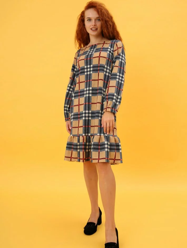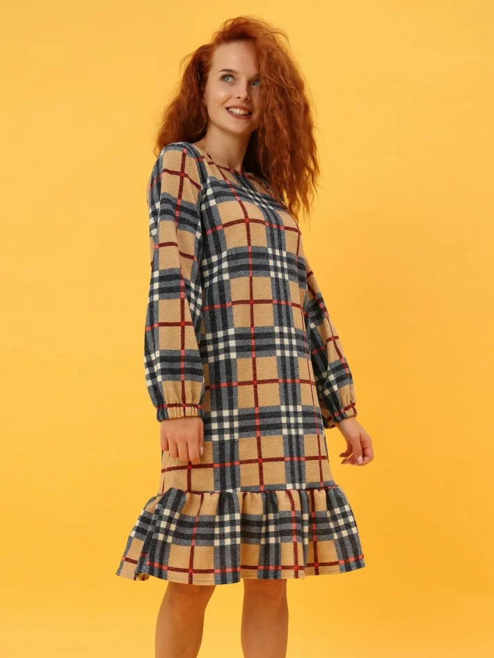 Жіночна сукня- трапеція з трикотажу. Довгий рукав і відкрита