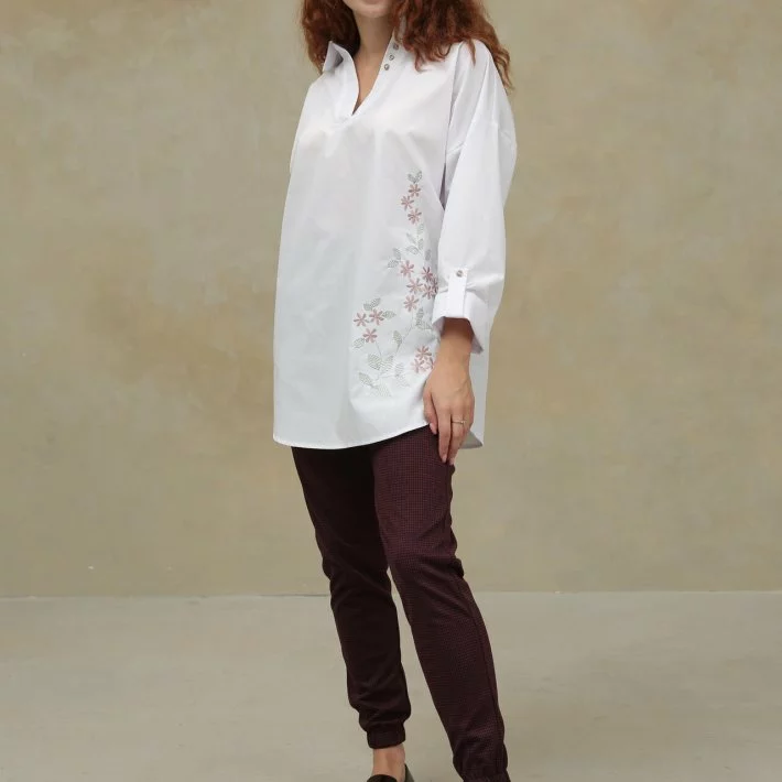 Довгий рукав, плавні лінії низу роблять туніку особливо жіночною.