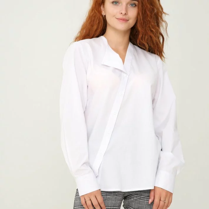 Не стандартне рішення класичної блузи. Білосніжна блузка прямого