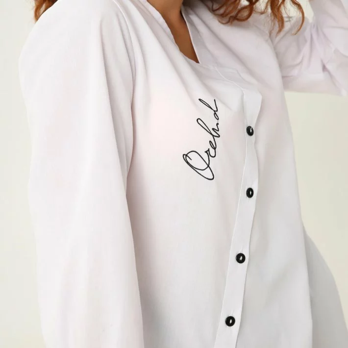 планка - застібка на гудзики. Блуза оформлена чорними гудзиками.