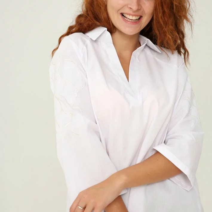 Сорочка рукав реглан із вишивкою по рукаву молочного кольору. Без