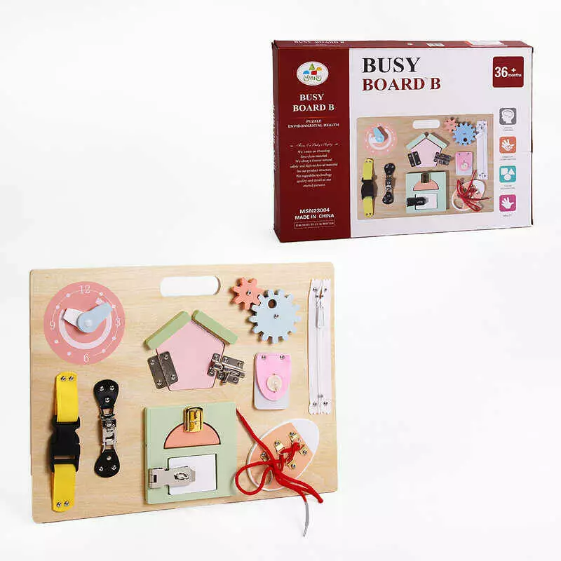 Бізіборд дерев`яний C 61702 (10) рухомі елементи, в коробці
