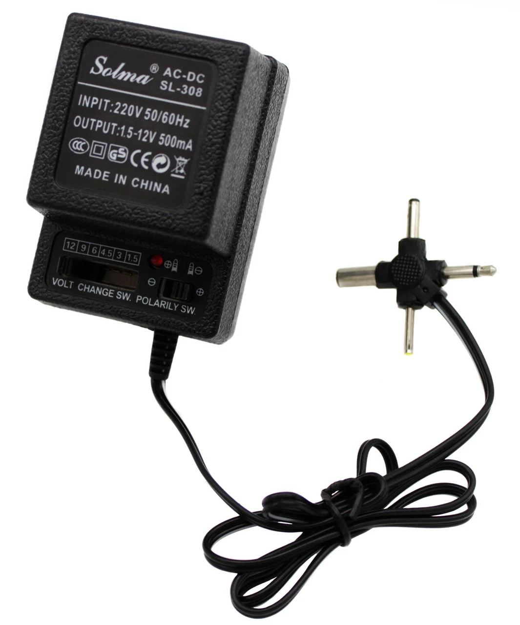 Преобразует стандартное входящее напряжение INPUT: AC220 50/60Hz в исходящее DC 1.5V-12V 500mA.
