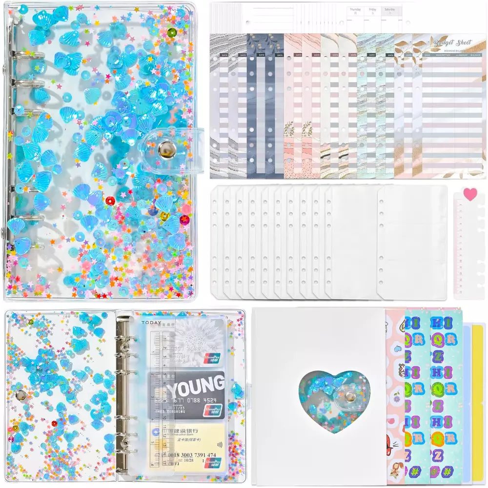 Планер для бюджета в формате A6 с прозрачной обложкой с блестками —